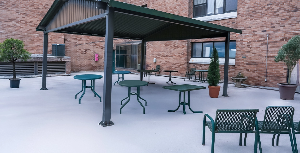 Our beautifully landscaped, fenced-in courtyard offers a peaceful outdoor retreat in the heart of Far Rockaway. With greenery and comfortable seating, it’s the perfect place for residents to relax, socialize, or enjoy a breath of fresh air in a secure, welcoming environment.